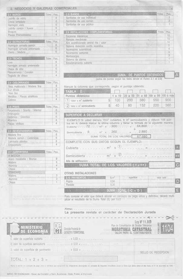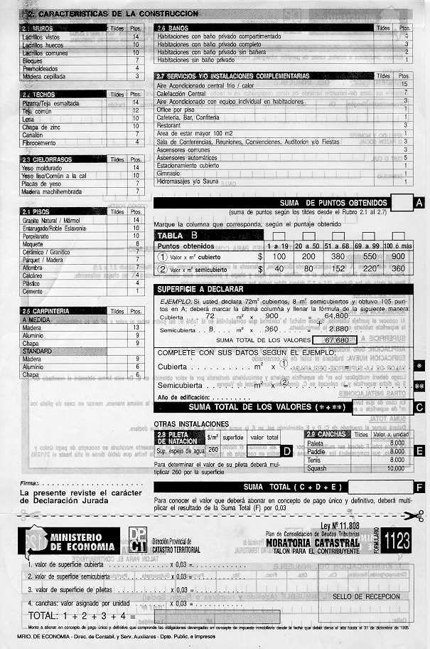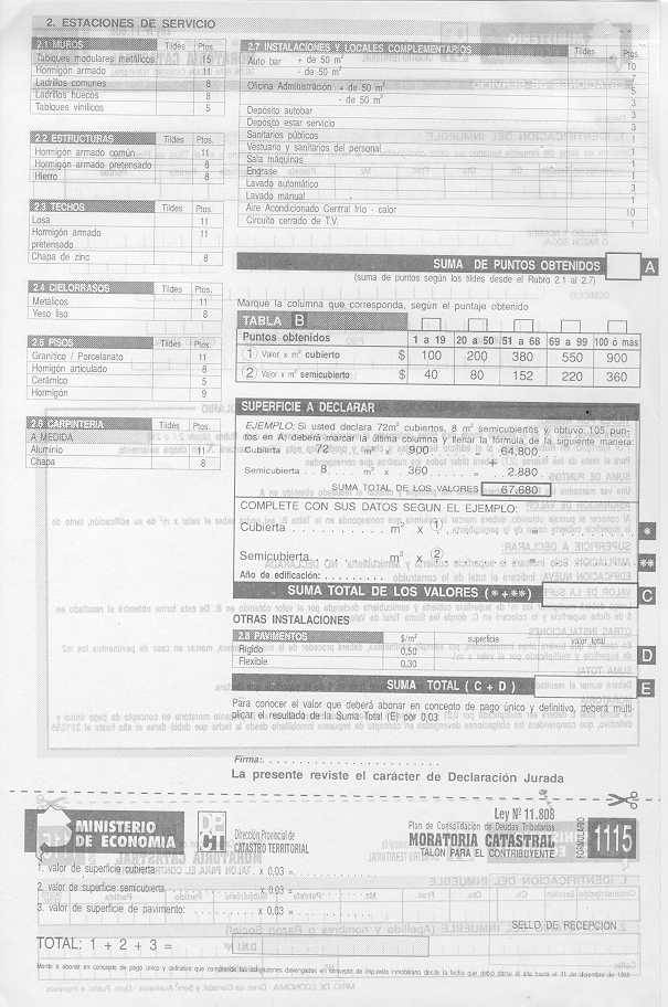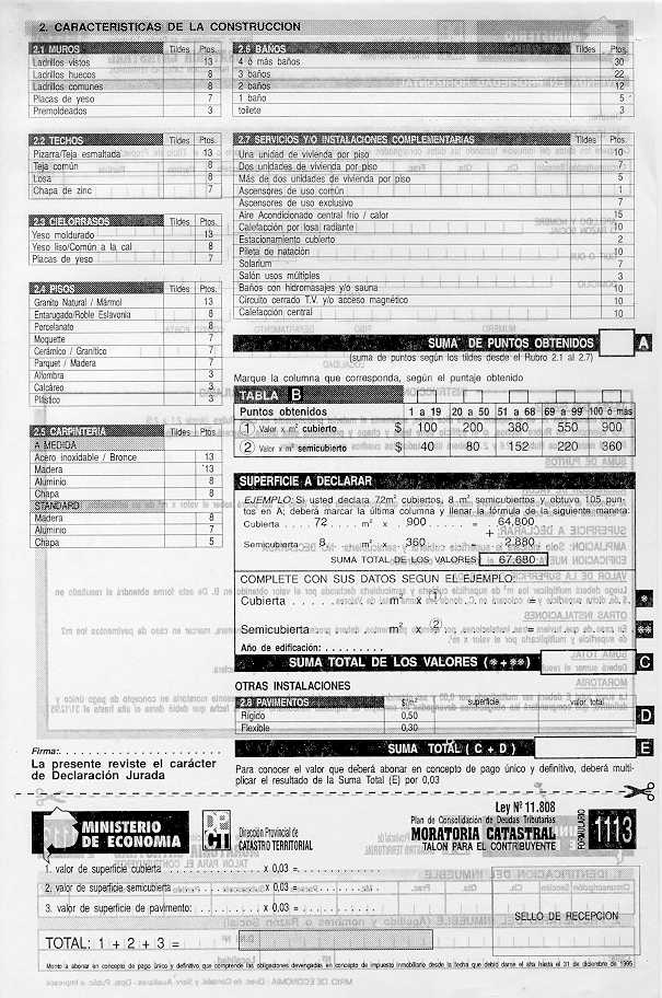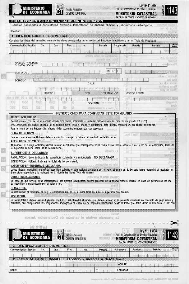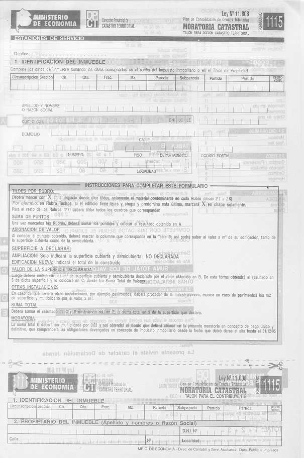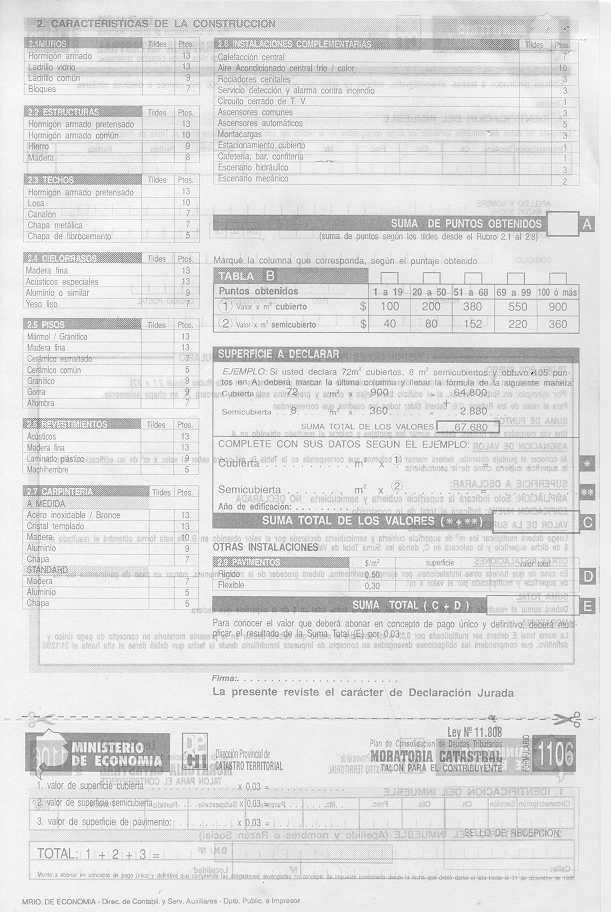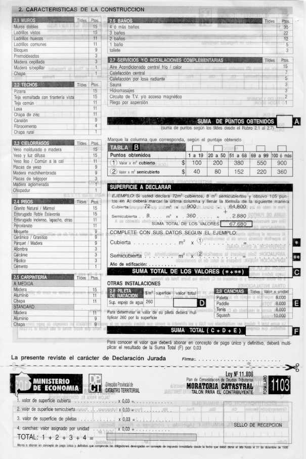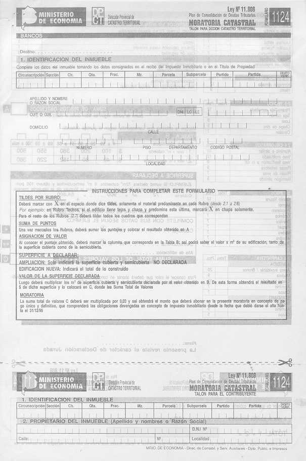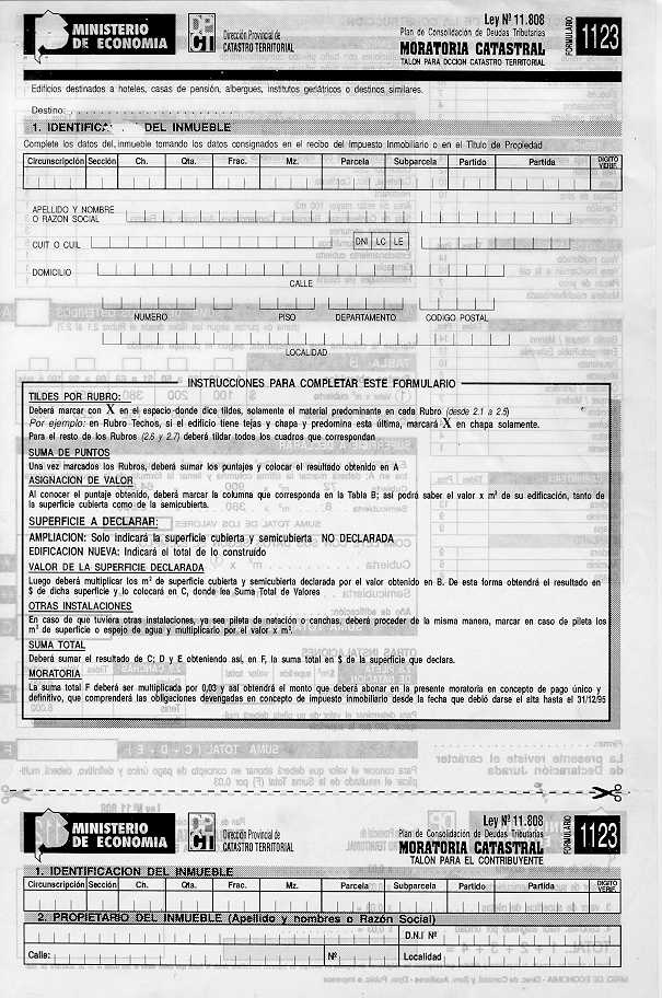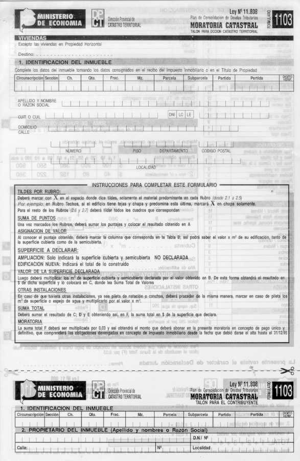 Visto los distintos operativos de fiscalización catastral implementados por esta Dirección Provincial; y CONSIDERANDO: Que esta Dirección Provincial de Catastro Territorial viene implementando distintos operativos tendientes a detectar e incorporar al registro catastral edificaciones e instalaciones no declaradas por los contribuyentes a fin de mantener actualizado el catastro provincial, ejerciendo el poder de policía inmobiliario; Que en el marco de tal actuación y como una forma más de asegurar una mejor fiscalización se dicto la Disposición Conjunta con la Dirección Provincial de Rentas N° 76/01 DPR y 1153/01 DPCT; Que a fin de facilitar a los contribuyentes la regularización de situaciones como las descriptas precedentemente corresponde en esta instancia extender el uso de los formularios de avalúo aprobados por la Disposición 9.602//00, para la declaración de las construcciones existentes a partir del 1/1/2000, sin que ello implique obtener los beneficios del Decreto 36.621/00; Por ello, EL DIRECTOR PROVINCIAL DE CATASTRO TERRITORIAL