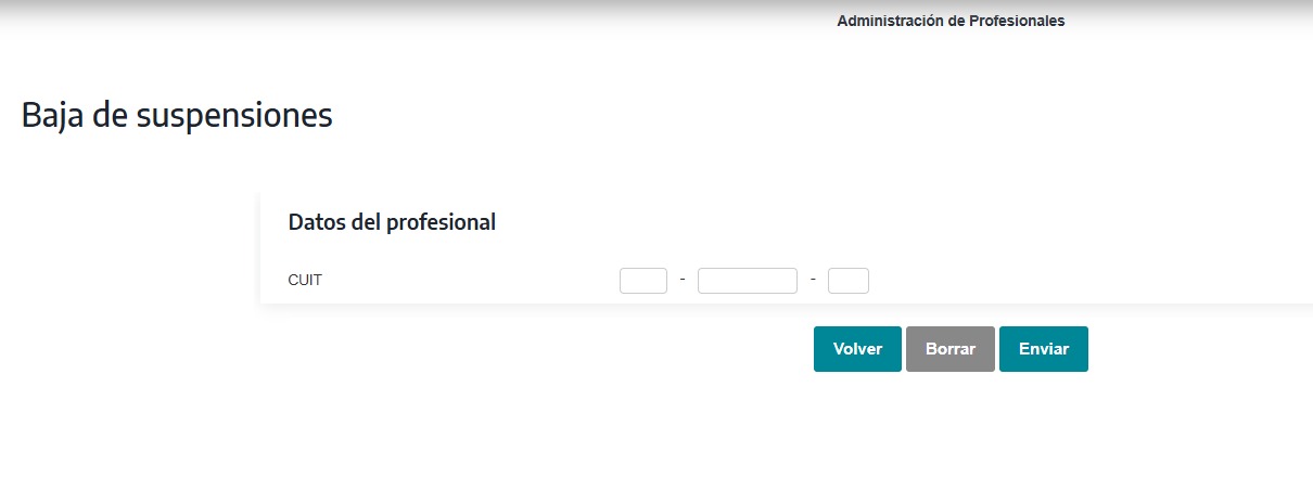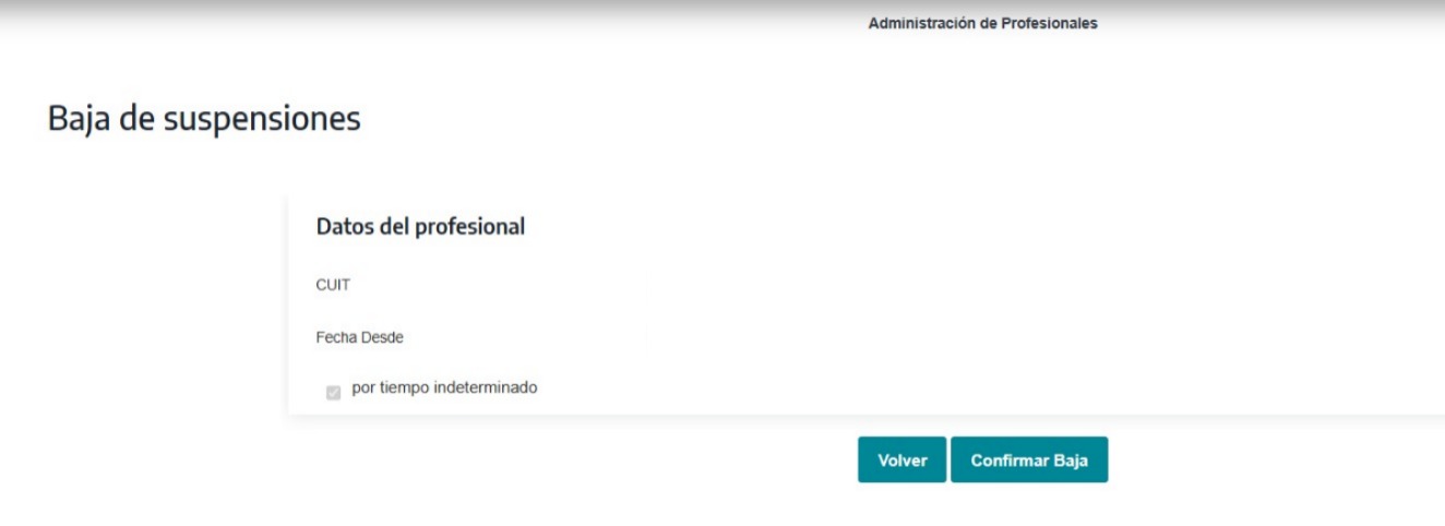 Verás una pantalla con los datos de la suspensión activa para el Profesional ingresado.