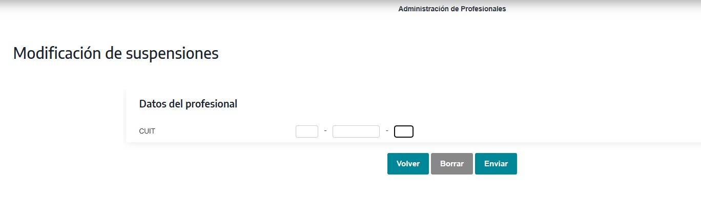 Verás una pantalla con los datos de la suspensión activa para el Profesional ingresado.