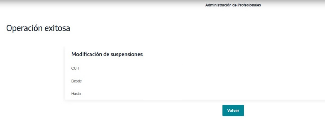 Verás una pantalla con los datos de la suspensión modificada, confirmando que la operación fue realizada con éxito.24/02/2026