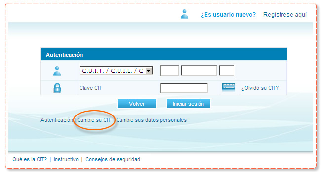 Para modificar su clave, deberá ingresar por cualquiera de las operaciones de registración, que requieran la carga de su CUIT y CIT. Una vez ingresado, deberá acceder a la opción "Cambie su CIT".